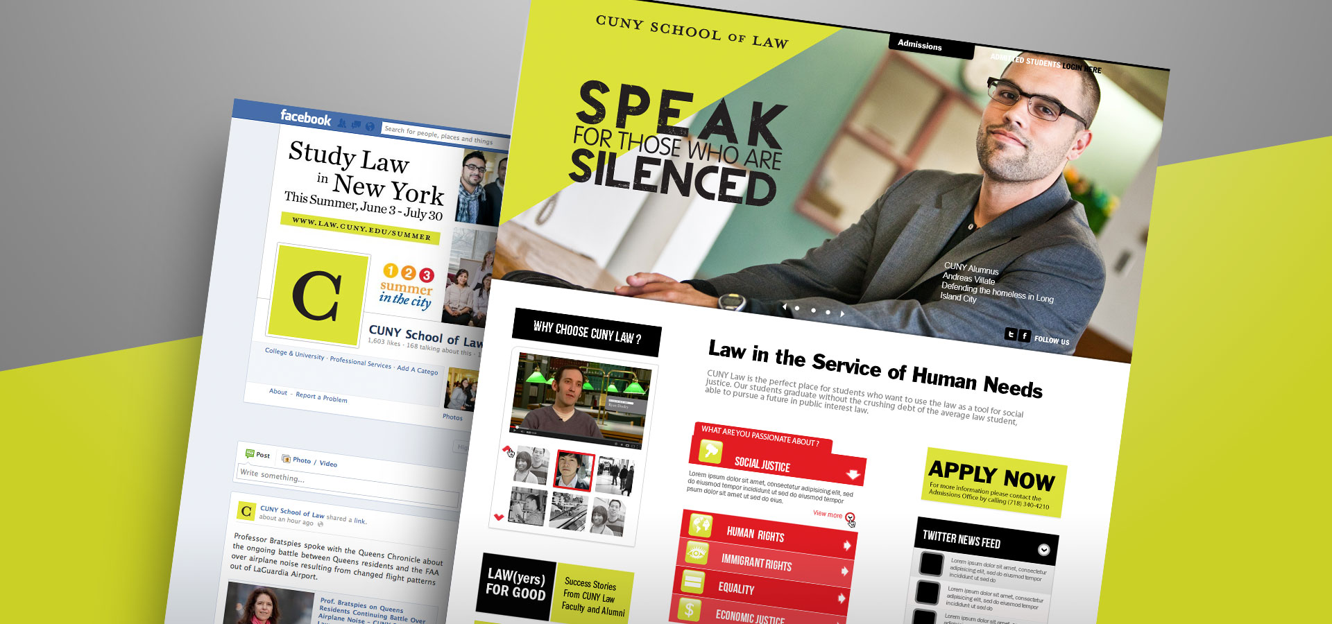 CUNY’s media-savvy, progressive, future students are famously unreceptive to traditional marketing. Our broad campaign involved developing an intensely authentic voice that took risks in speaking to potential applicants in a language they related to when they were most receptive to listening. It necessitated unique and effective tools that separated CUNY Law from every other law school through strong online, off-line, and location-based tactics.