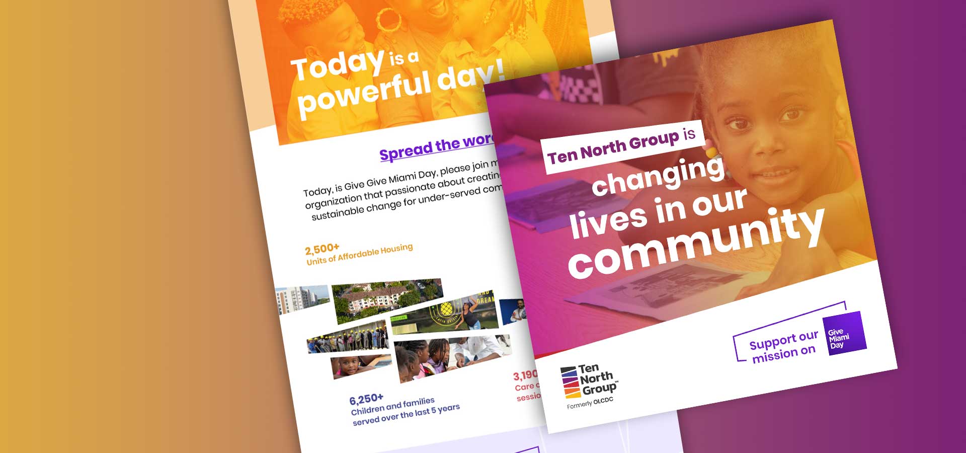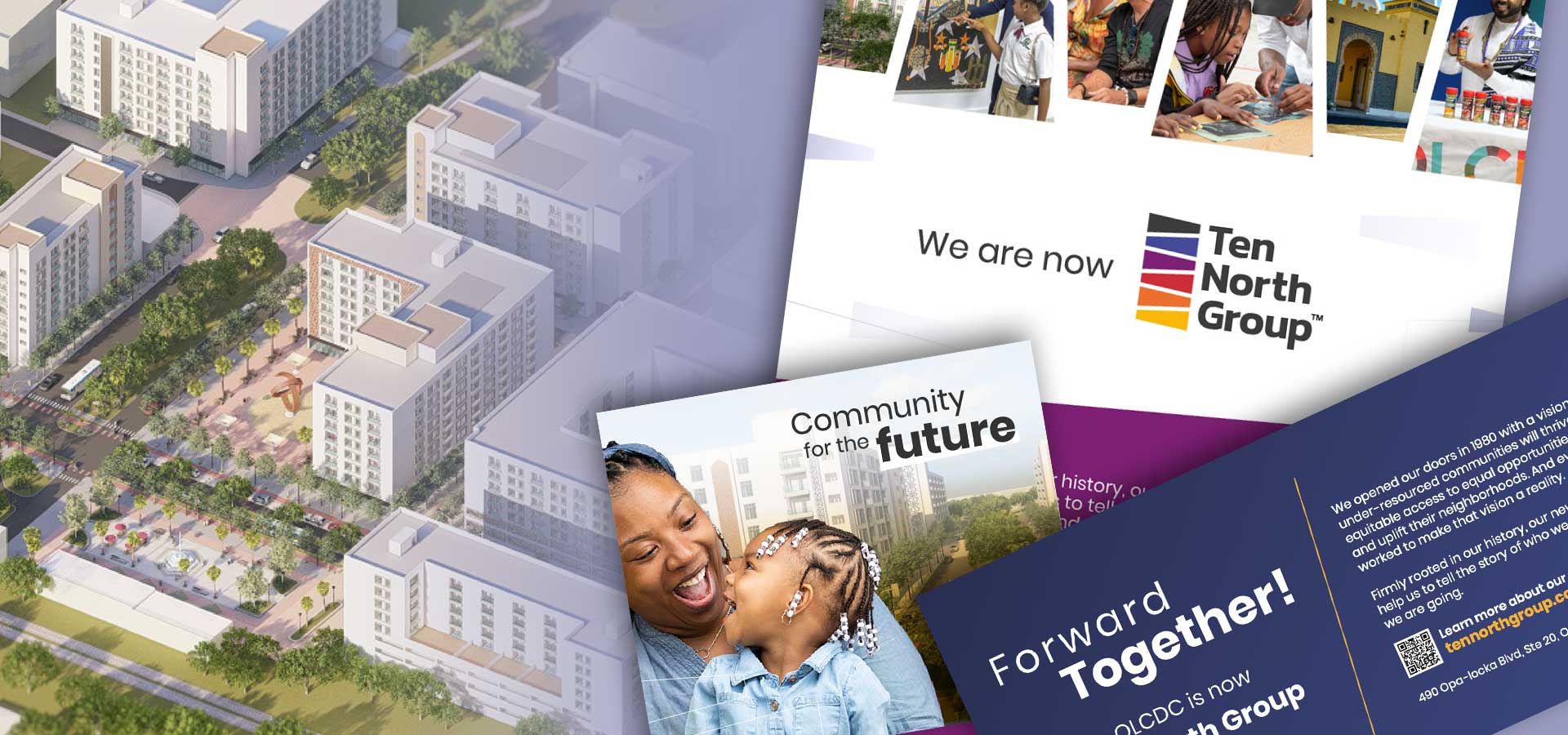 Our work began with a DNA that brought objectivity and deep insights to guide the strategic development needed to authentically execute the rebrand. This required a complete overhaul of messaging to enable consistent delivery of the breadth and innovative focus of the organizations purpose through all touchpoints The name Ten North is a term originally used to describe the plot of land that became Opa Locka Florida (ten miles north of Miami) it became a great story telling tool that allowed the group to honor it’s origin without being defined by it. One of the most effective tools in this identity is the story telling and architecture incorporated into the mark. It enabled representation of the organizations varied affiliates woven together under the broader mission.